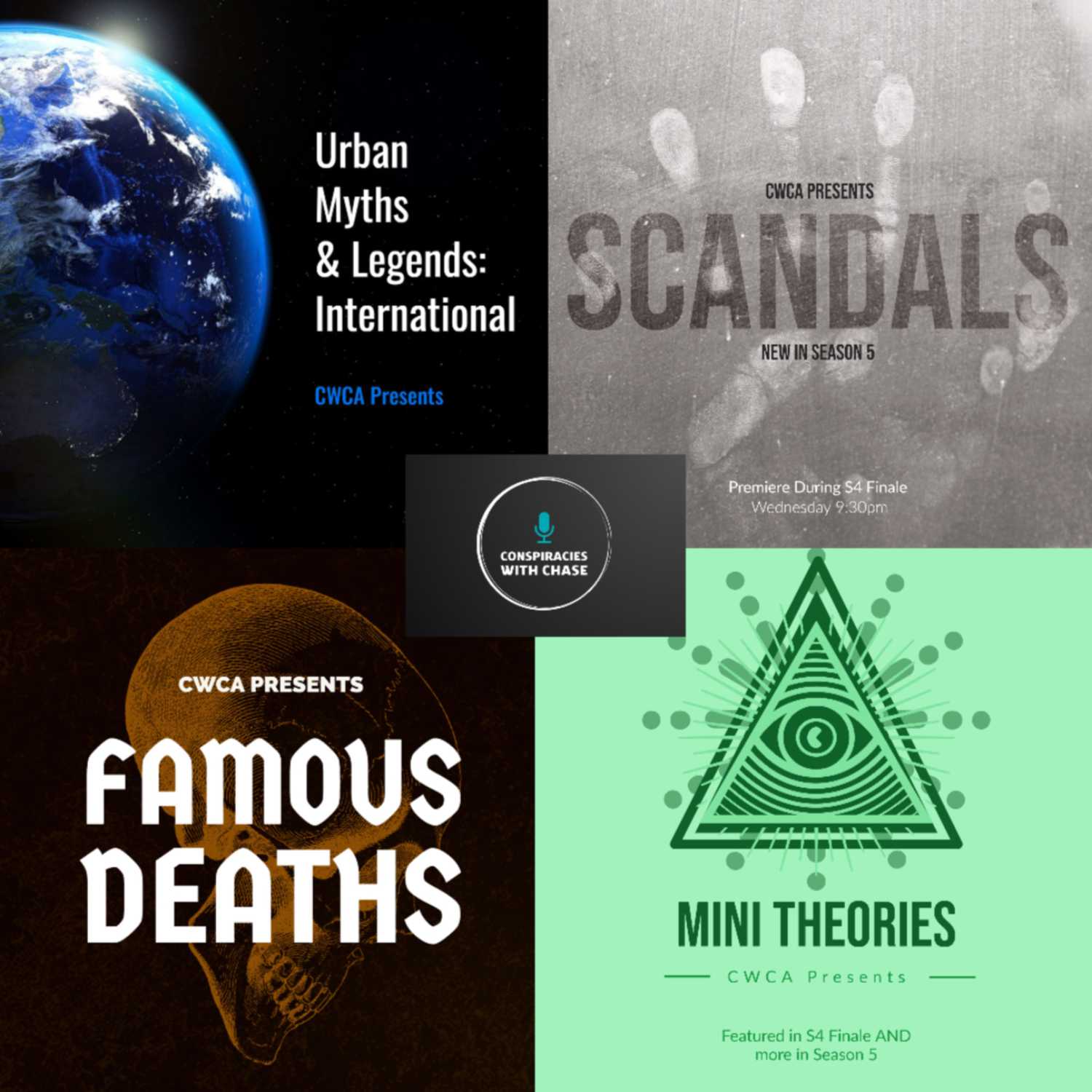 Welcome to Conspiracies with Chase! This is a podcast focused on conspiracies, no matter the size or how heated the topic is. At CWCA, we show both sides of the conspiracy so you can decide what you want to believe. New episodes are available every week, Wed-Fri @ 9:30 PM. Make sure you check us out on social media and our website for more information. -