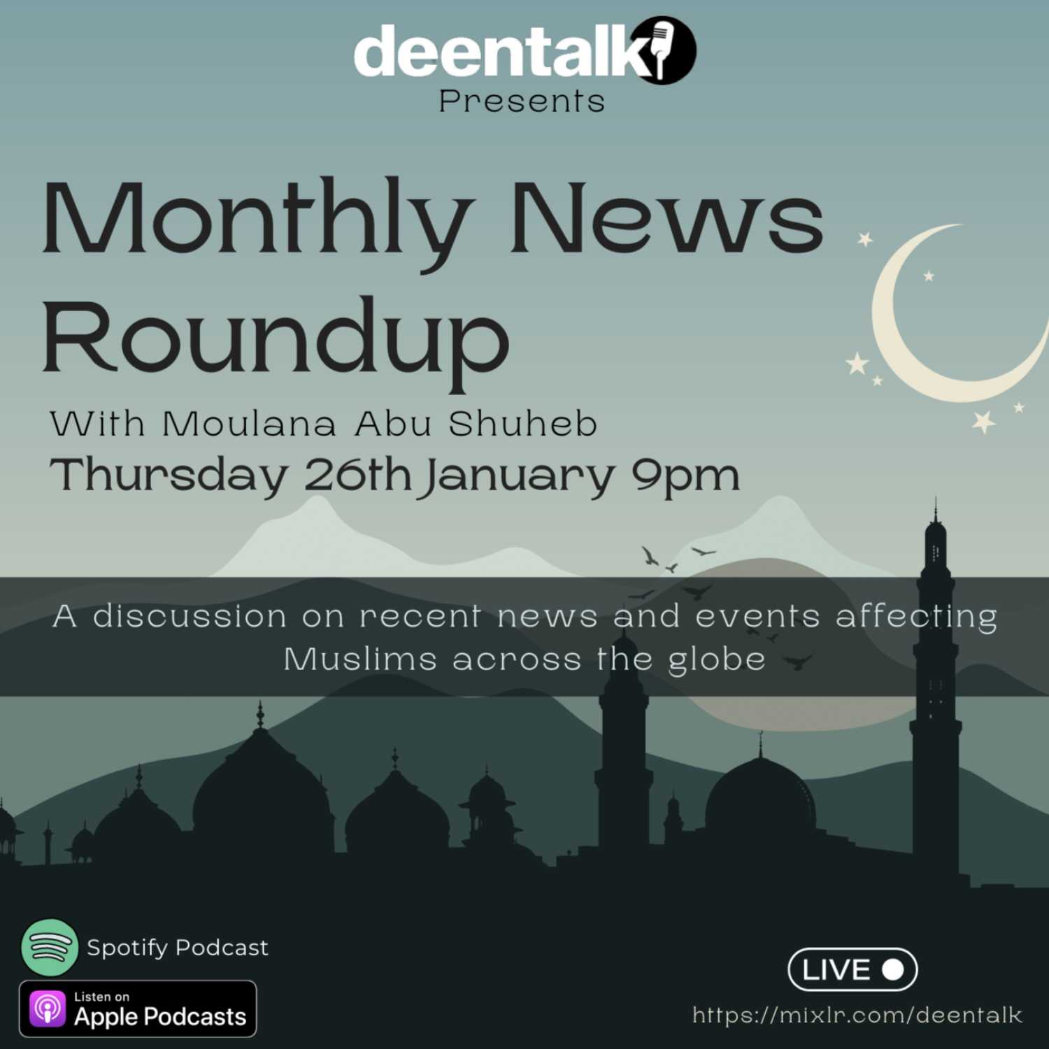 Created By Deen Talk OfficialPodcast Status activeStarted 22/06/2022Latest Episode 18/04/2023Release Period EpisodicEpisodes 13Partner Reviews 0Language EnglishFrequency 473Average Length 59 minutes and 43 secondsCountry United StatesGlobal Rank TOP 1%Description