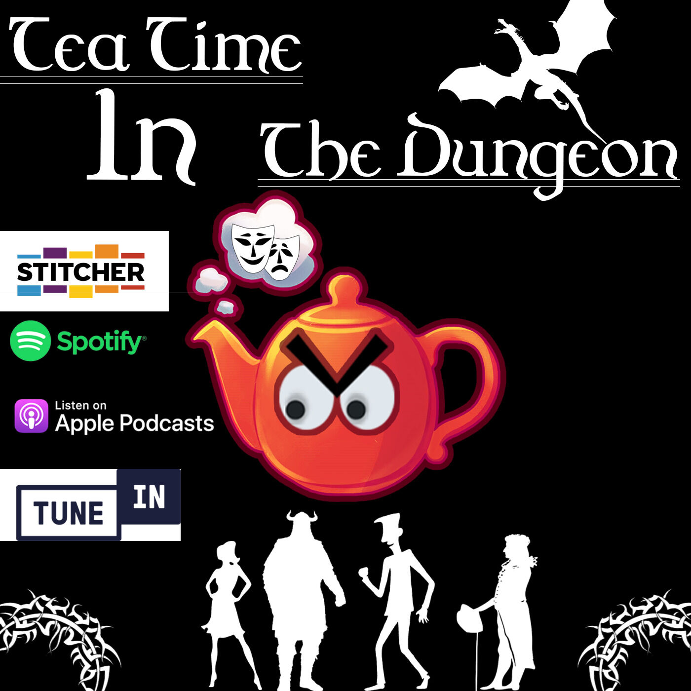 Greetings Travellers, and welcome to the podcast that just like all of us, is randomly generated. We make use of the AI Dungeon App and an application called Twine to create interesting and fascinating tales of adventure..... Which we then coincidentally ruin... Shane who is running the show is a Professional Actor and uses this podcast selfishly to up his chances of attaining his own netflix series. We also have Co Hosts - Dylan the great chin, Marcus the Travelling Salesman, Steven the Irish bard, Kelly the elegant Elf and Jon the Mountain Man. Join our weekly podcasts to keep up to date with all the adventures our team gets on, at least until the impending netflix offer...Fancy Getting involved? Feel free to email us your ideas at: Teatimeinthedungeon@gmail.com -