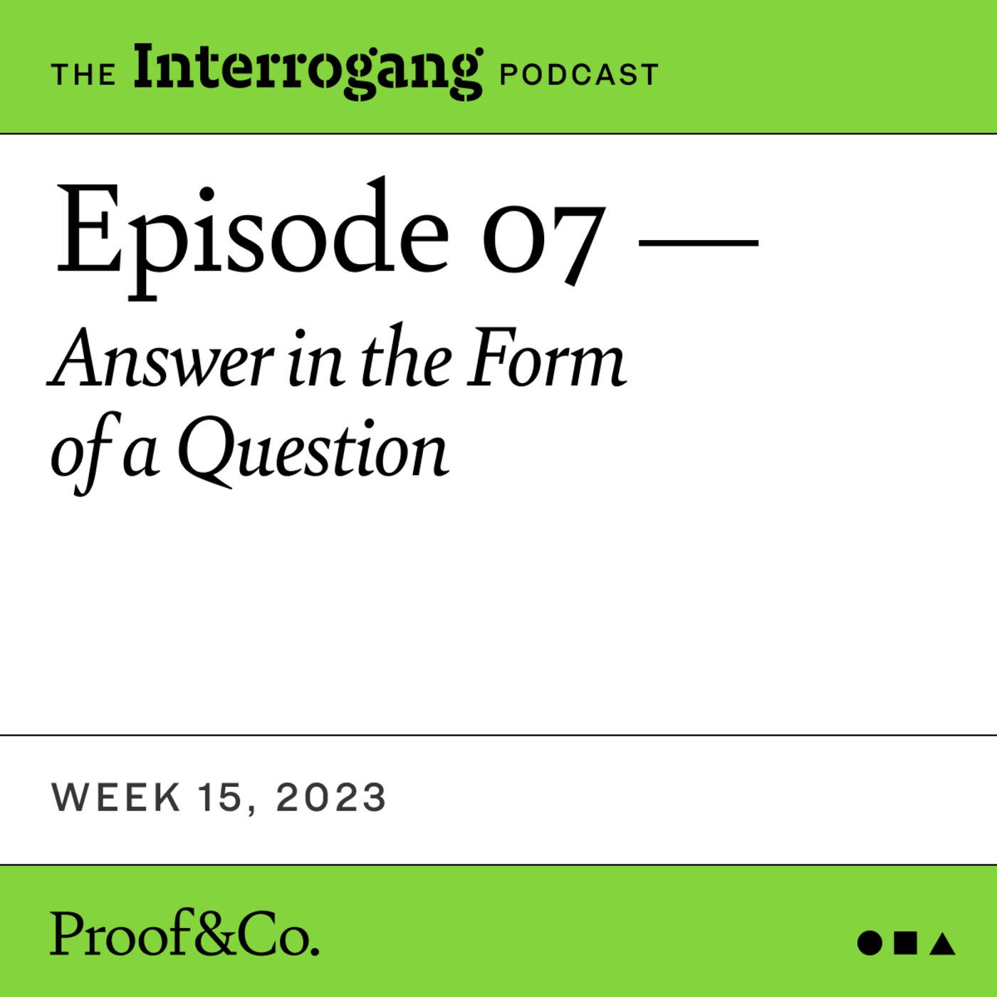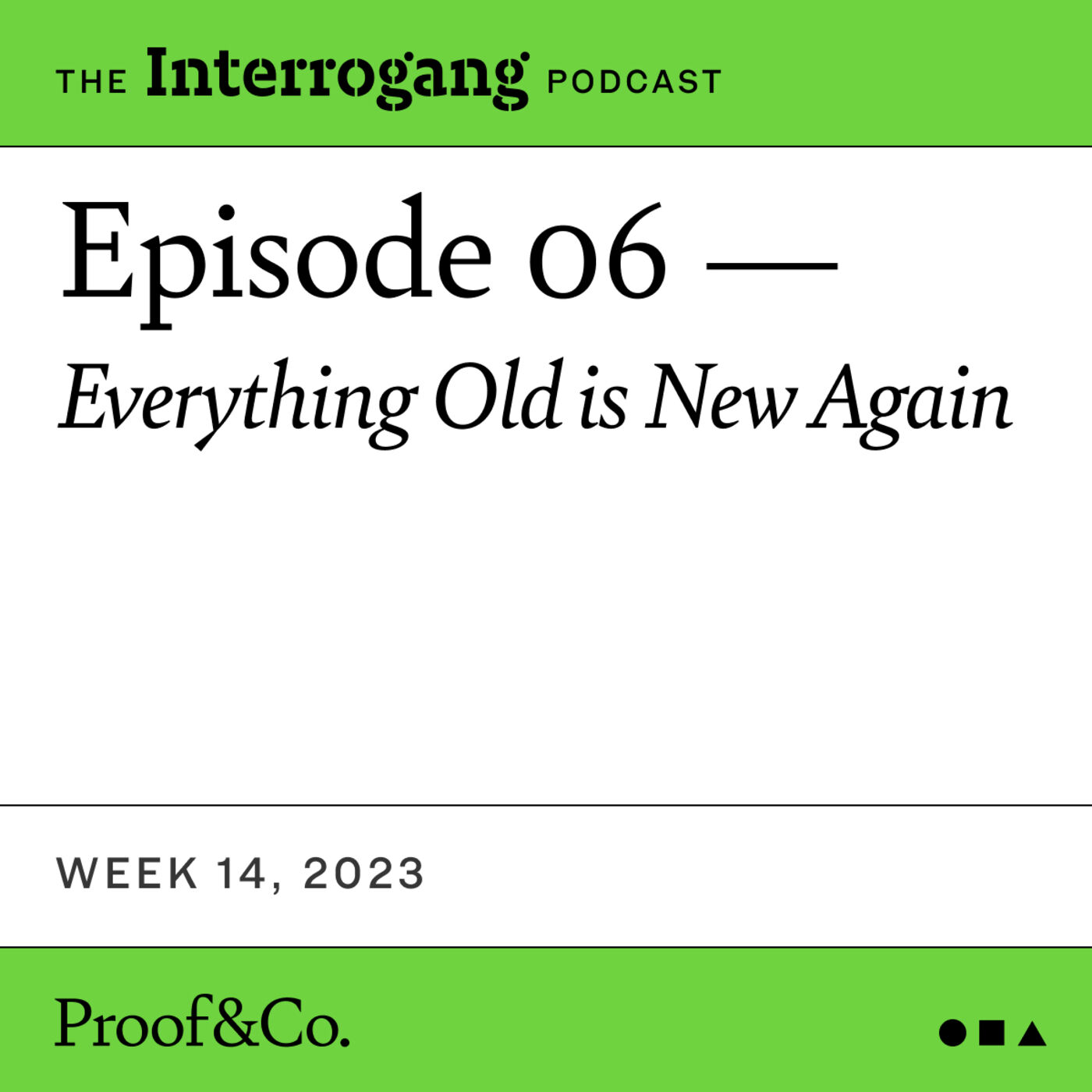 Created By Proof&Co.Podcast Status activeStarted 19/03/2021Latest Episode 26/04/2023Release Period EpisodicEpisodes 72Partner Reviews 0Language EnglishFrequency 177Average Length 30 minutes and 23 secondsCountry United StatesGlobal Rank TOP 10%Description